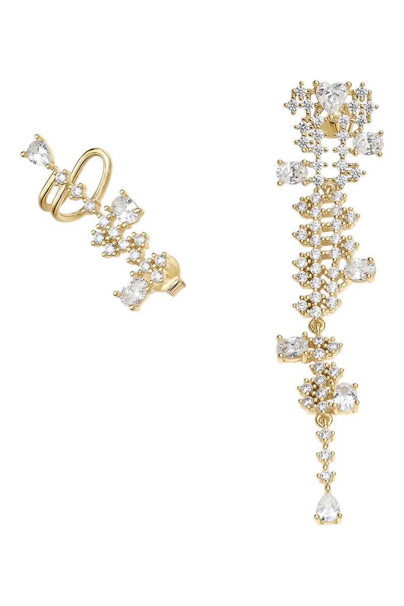 Boucles d’oreilles dépareillées en plaqué or jaune serties de zircones et d’un diamant.
