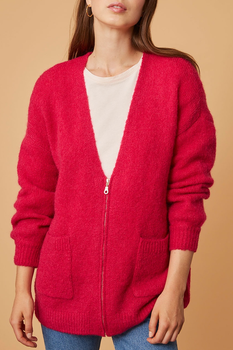Gilet long à manches longues en mohair et mérinos mélangés.