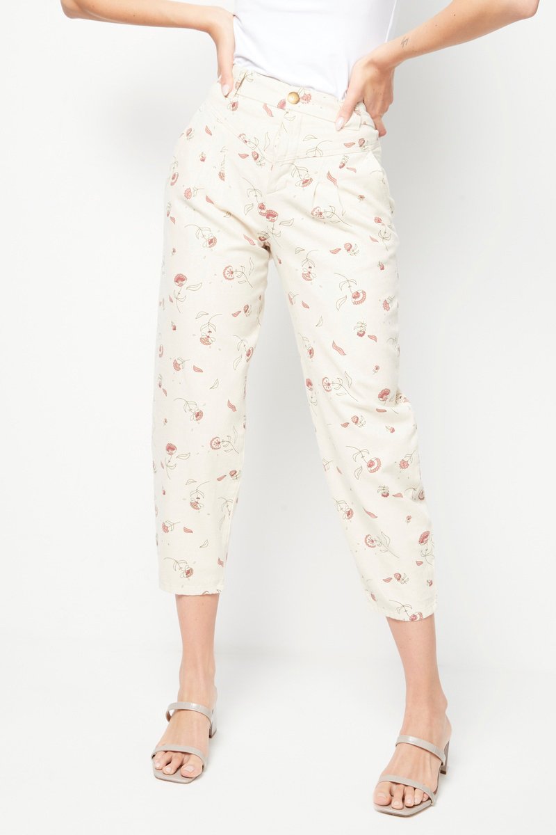 Jean carotte 7/8 Abbie - Ecru et vieux rose
