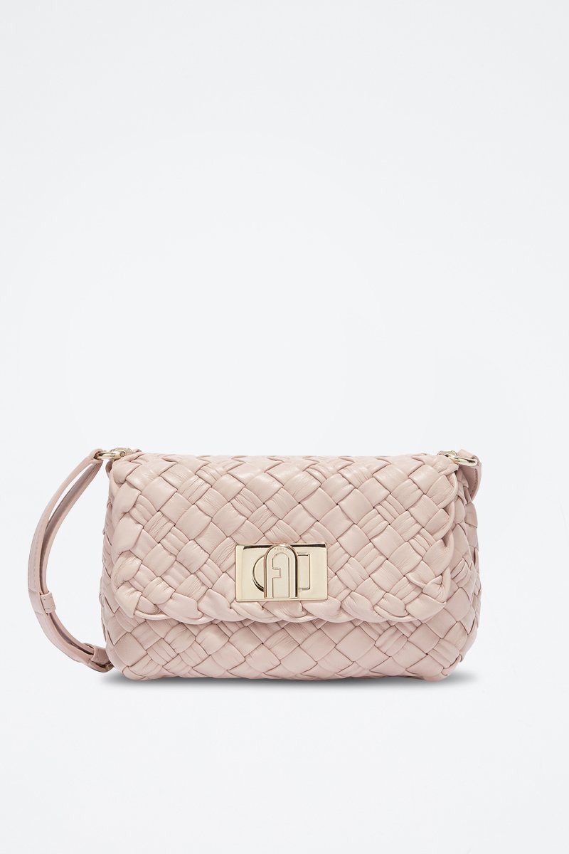 Sac bandoulière en cuir d'agneau Furla Gerla - Rose poudré