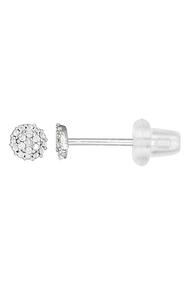 Puces en or blanc serties de 9 diamants.