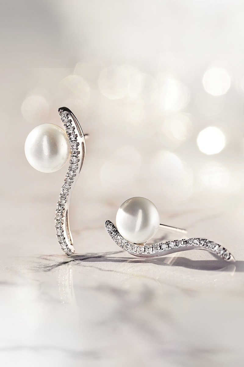 Boucles d'Oreilles Vague Sublime - Or blanc, diamants et perles de culture