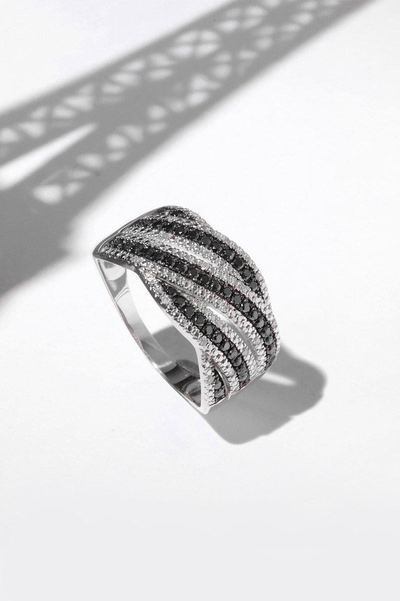 Bague en or blanc sertie de 20 diamants et de 44 diamants noirs.