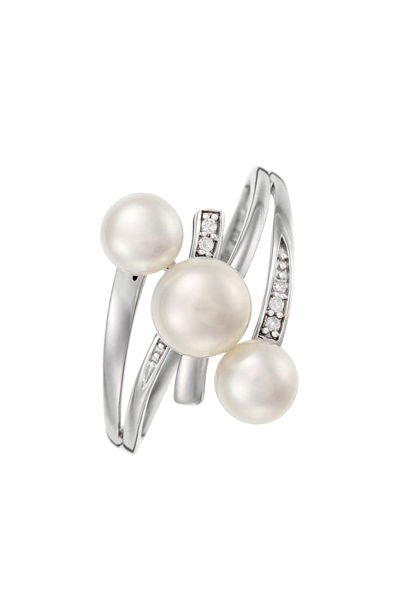 Bague Kawai - Or blanc, diamants et perles de culture