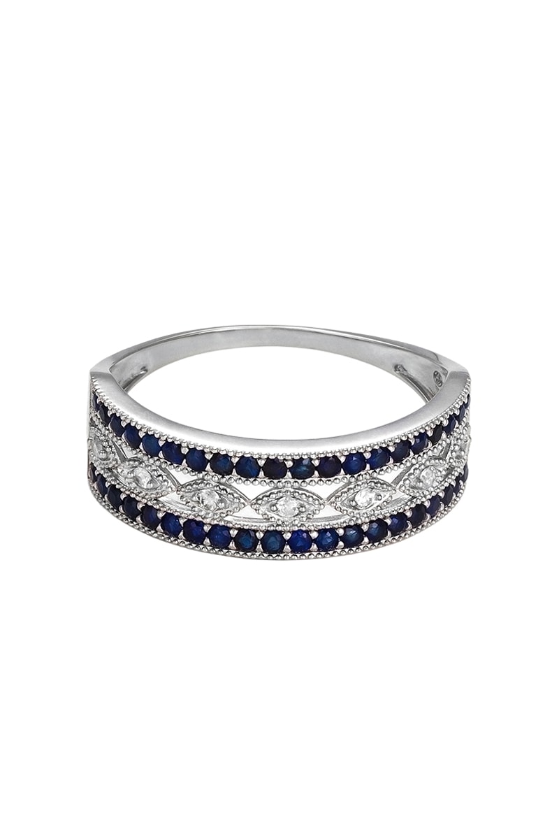 Matière : or blanc 375/1000, diamants 0,059 carat/7 et saphir 0,68 carat/40