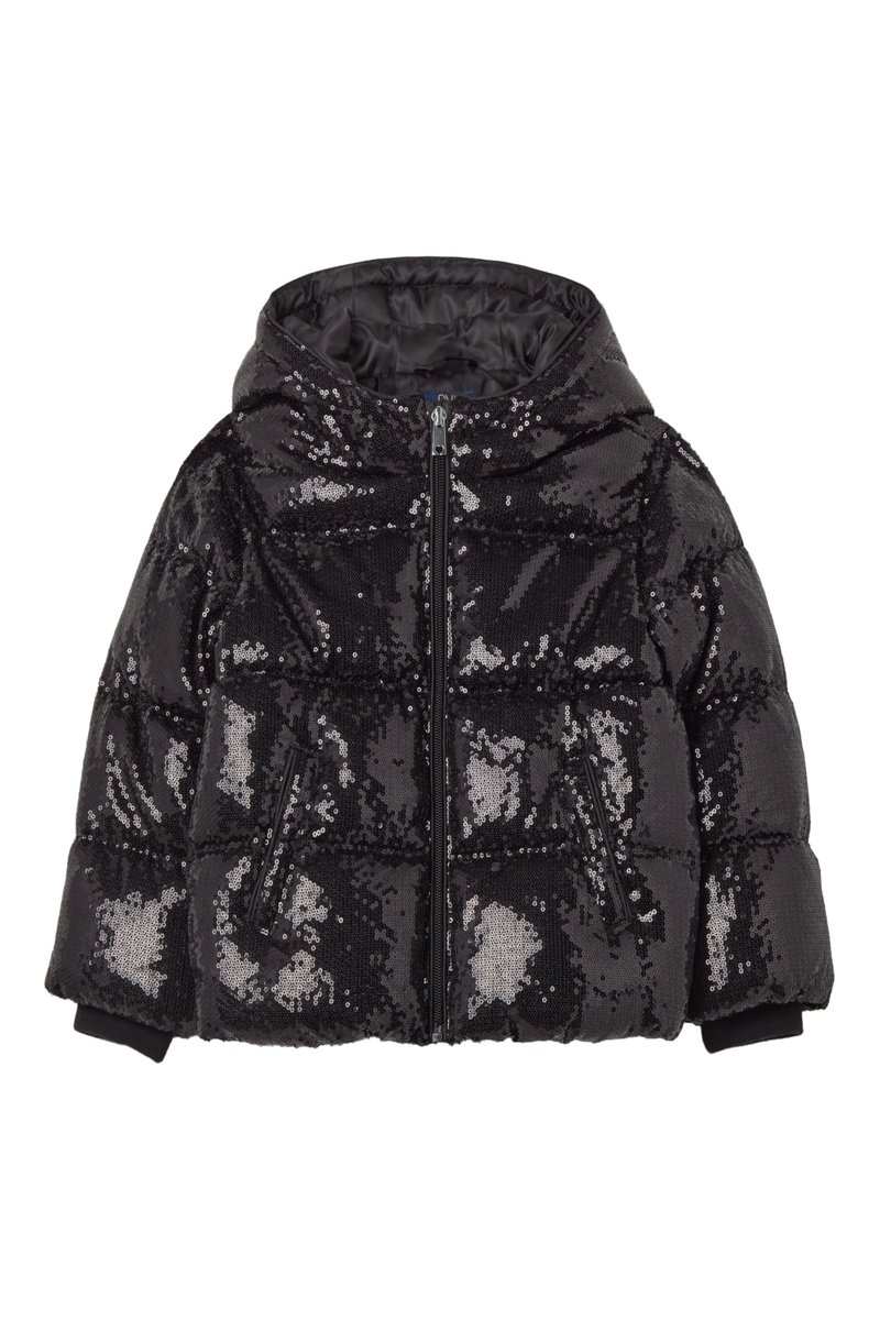 Doudoune à sequins à capuche.