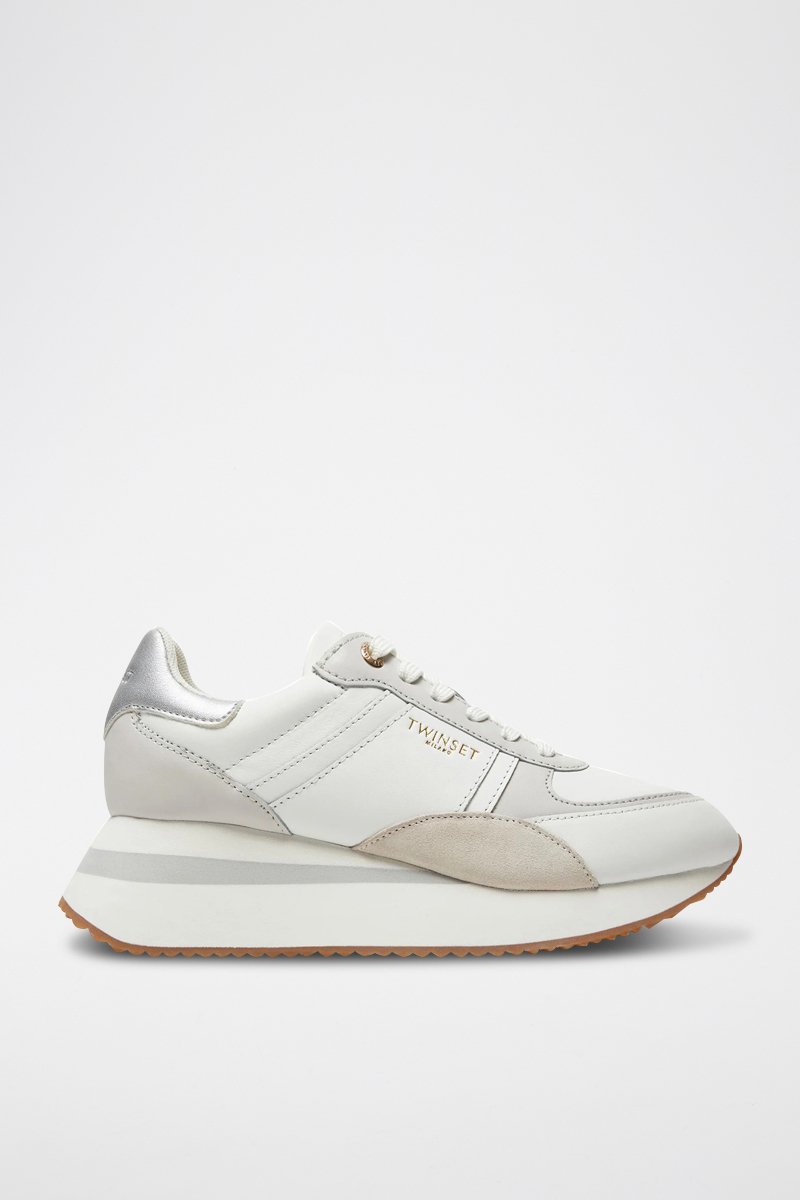 Baskets compensées en cuir et nubuck.