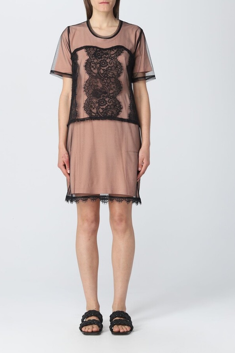 Robe droite bi-matière à manches courtes.