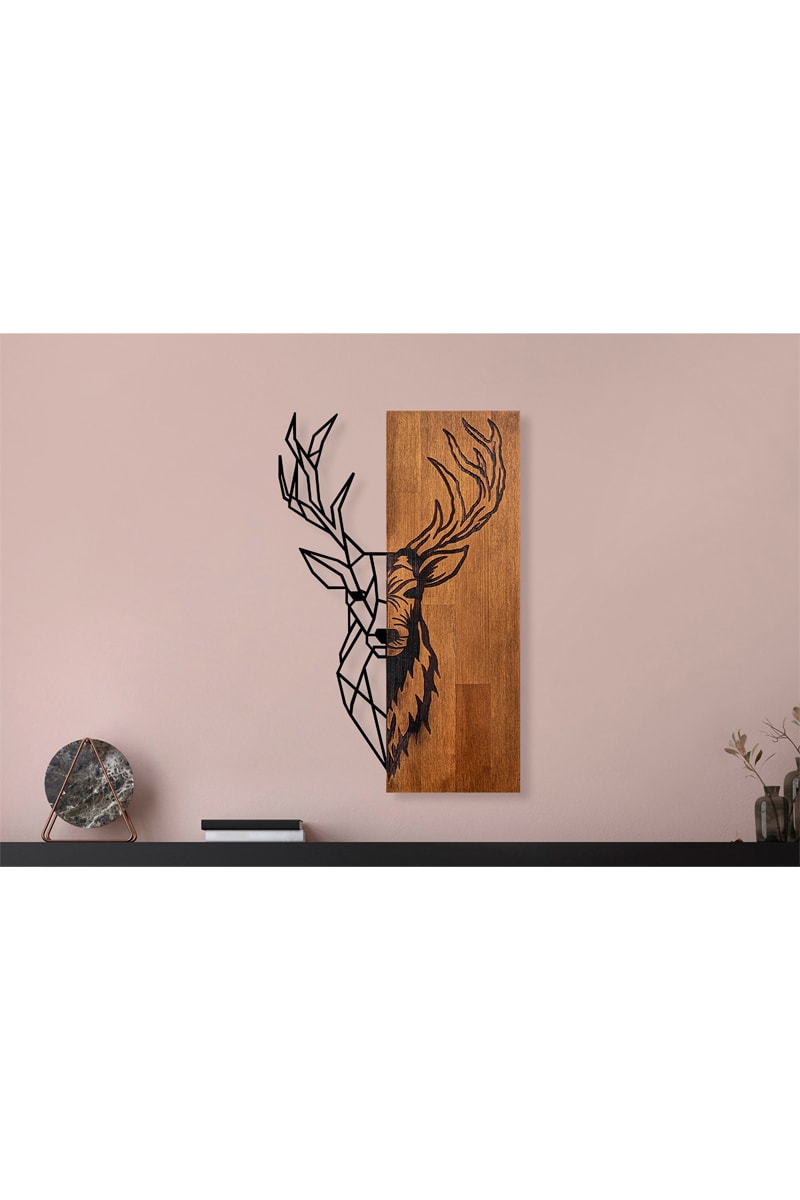 Décoration murale en bois Red Deer 1 - 36 x 58 cm - Naturel et noir