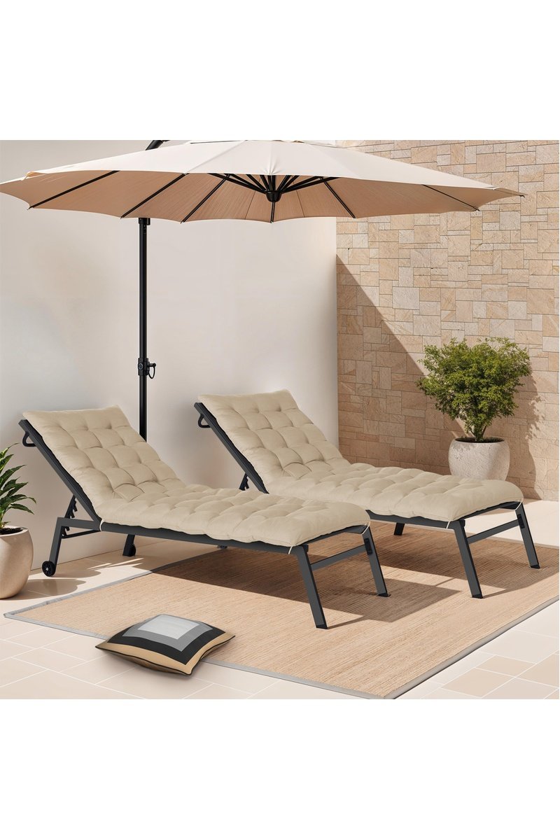 2 coussins pour chaise longue - Beige - 180 x 52 x 8 cm