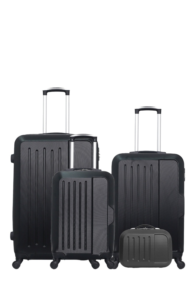 Set de 3 valises et vanity Vesuvio (S/M/L/K) - 55/65/75/30 cm - Noir