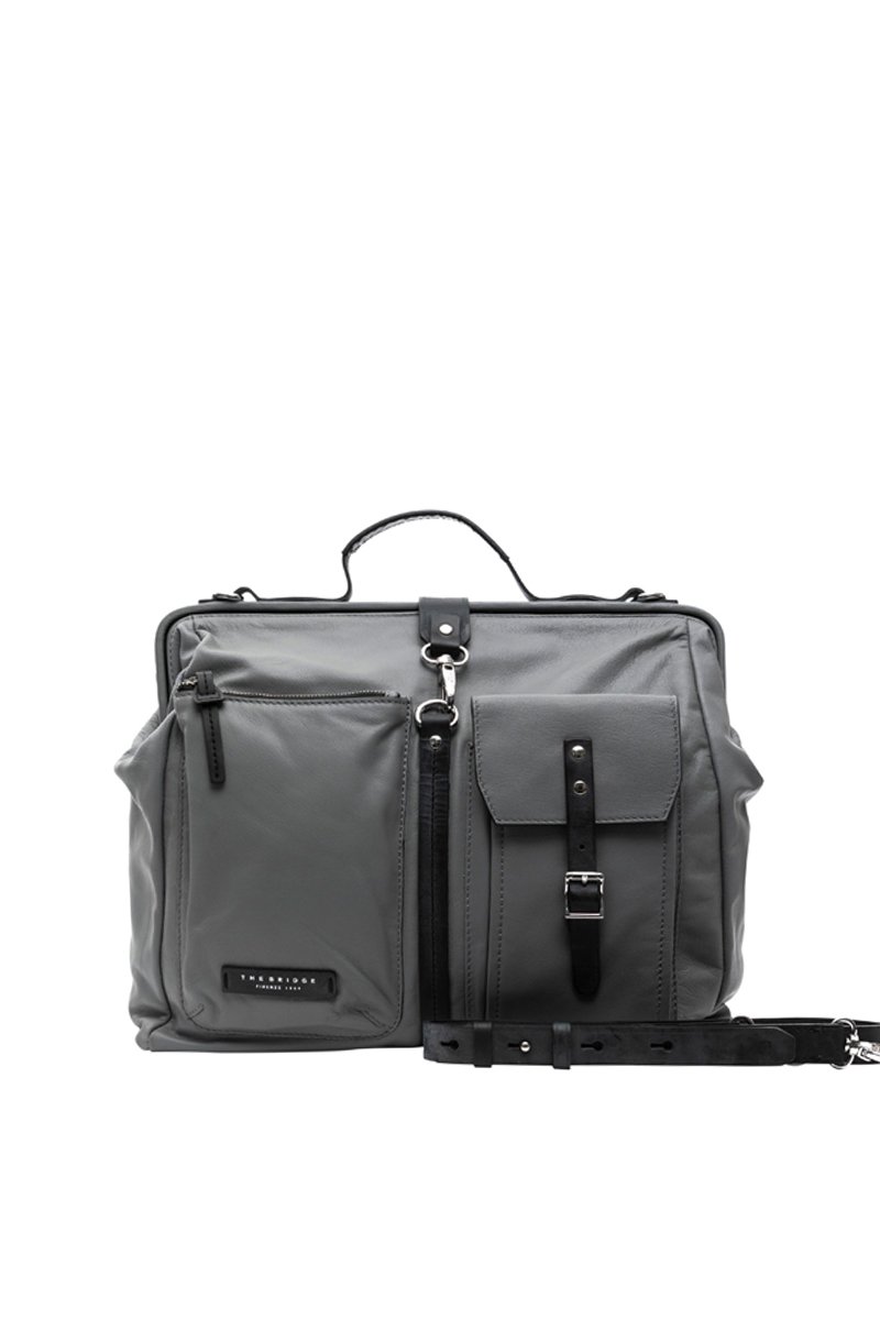 Sacoche en cuir - Gris et noir