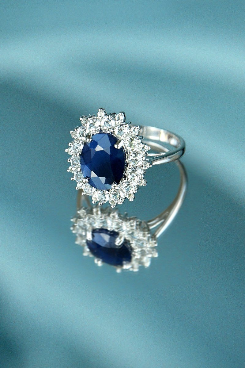 Bague Soleil Bleu - Or blanc, topazes et saphir