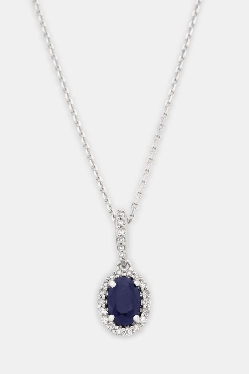 Pendentif Courtoisie - Or blanc, diamants et saphir