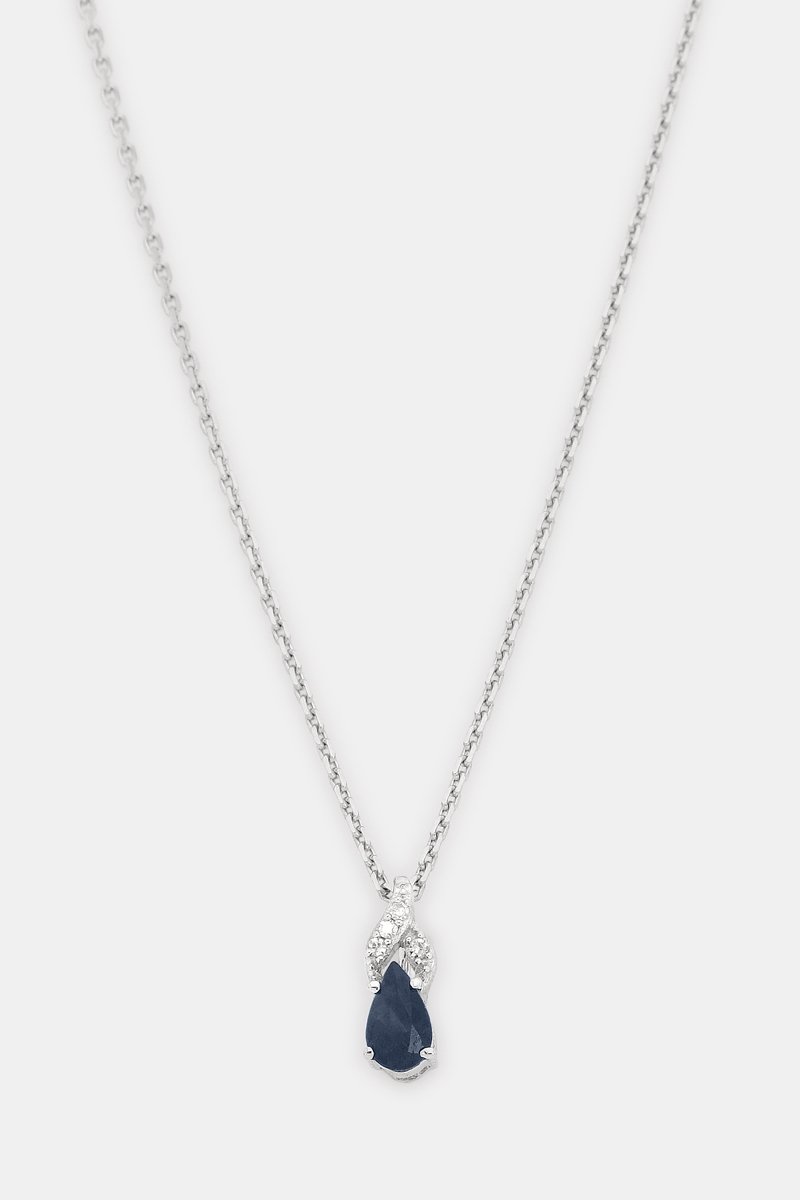 Pendentif Larme de Saphir - Or blanc, diamants et saphir