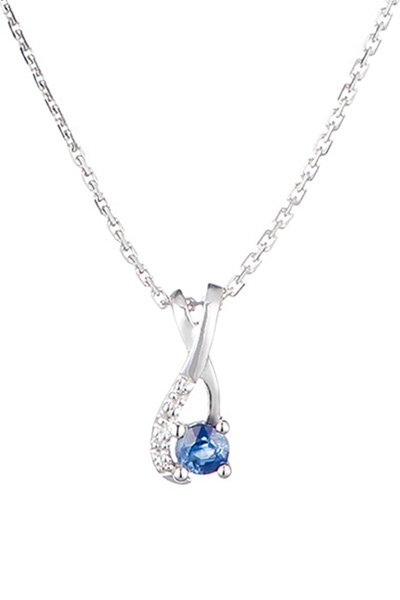 Pendentif - Or blanc, diamants et saphir