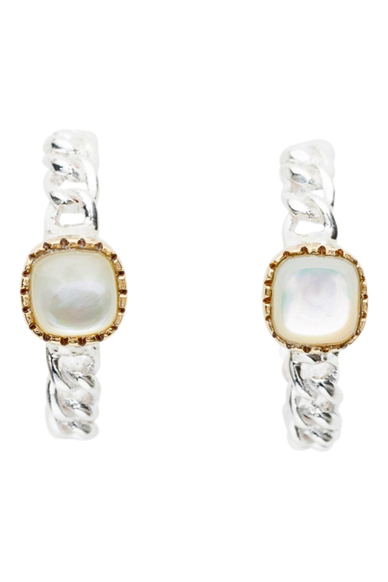 Créoles en argent serties de nacre.