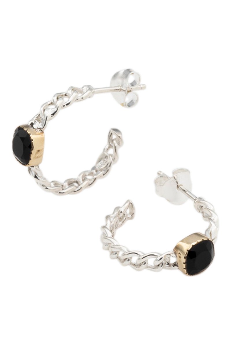 Créoles en argent serties d’un onyx.