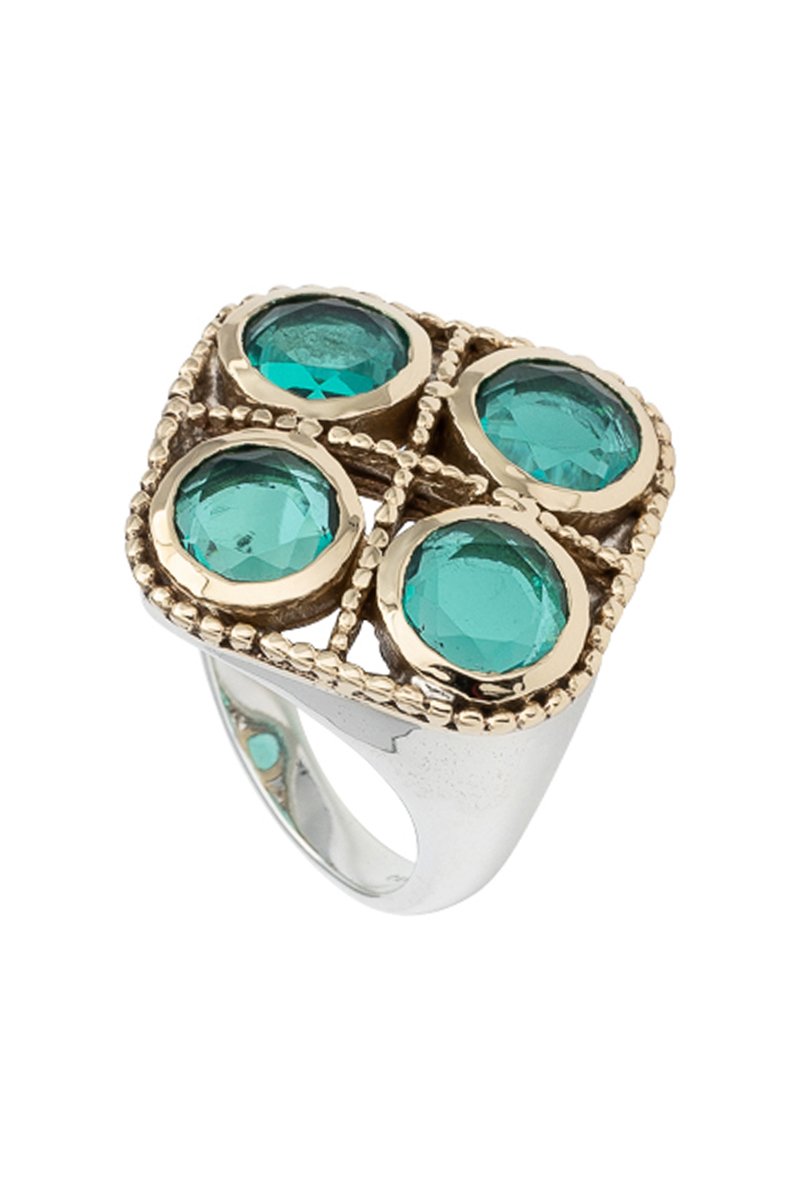 Bague en argent sertie de 4 cristaux.