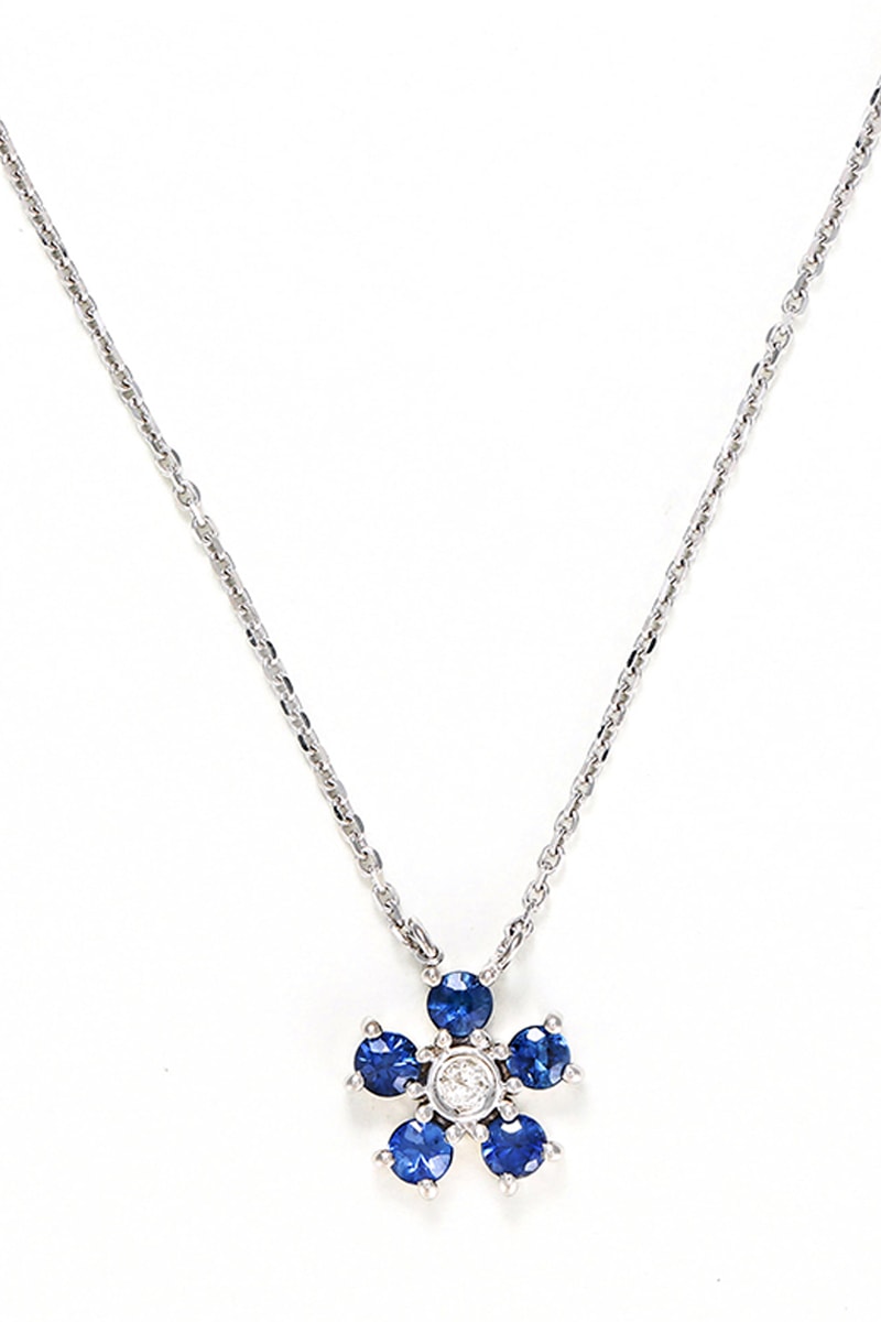 Matière : or blanc 375 / 1000, diamant 0,03 carat/1 et saphirs 0,4 carat/5