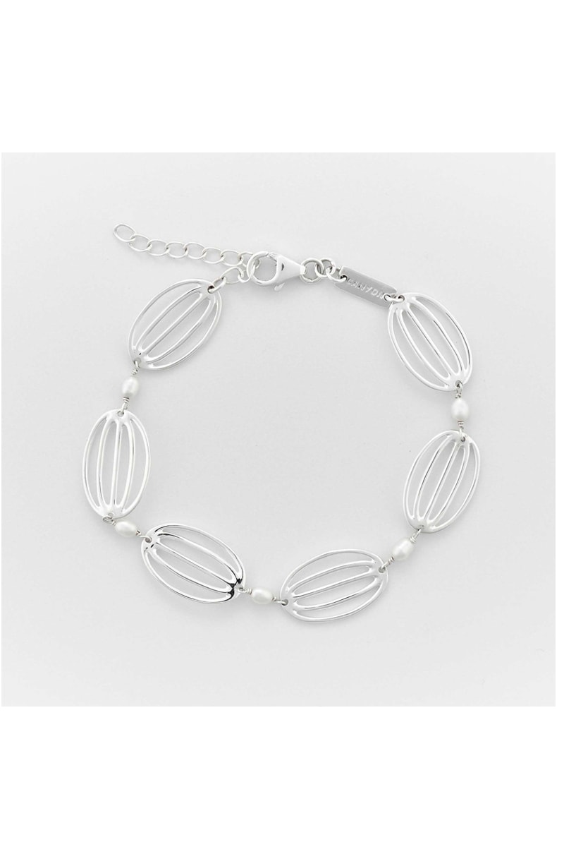 Bracelet en argent serti de perles d'imitation.