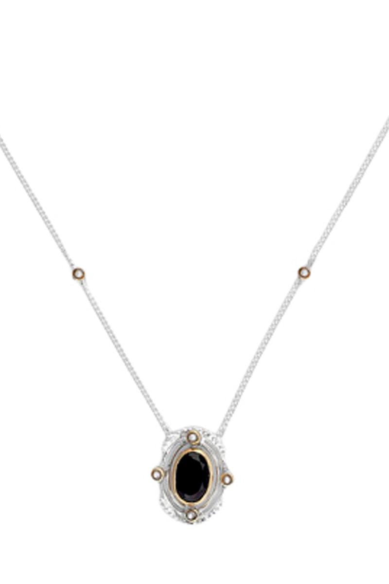 Collier - Argent, onyx et perles d'imitation