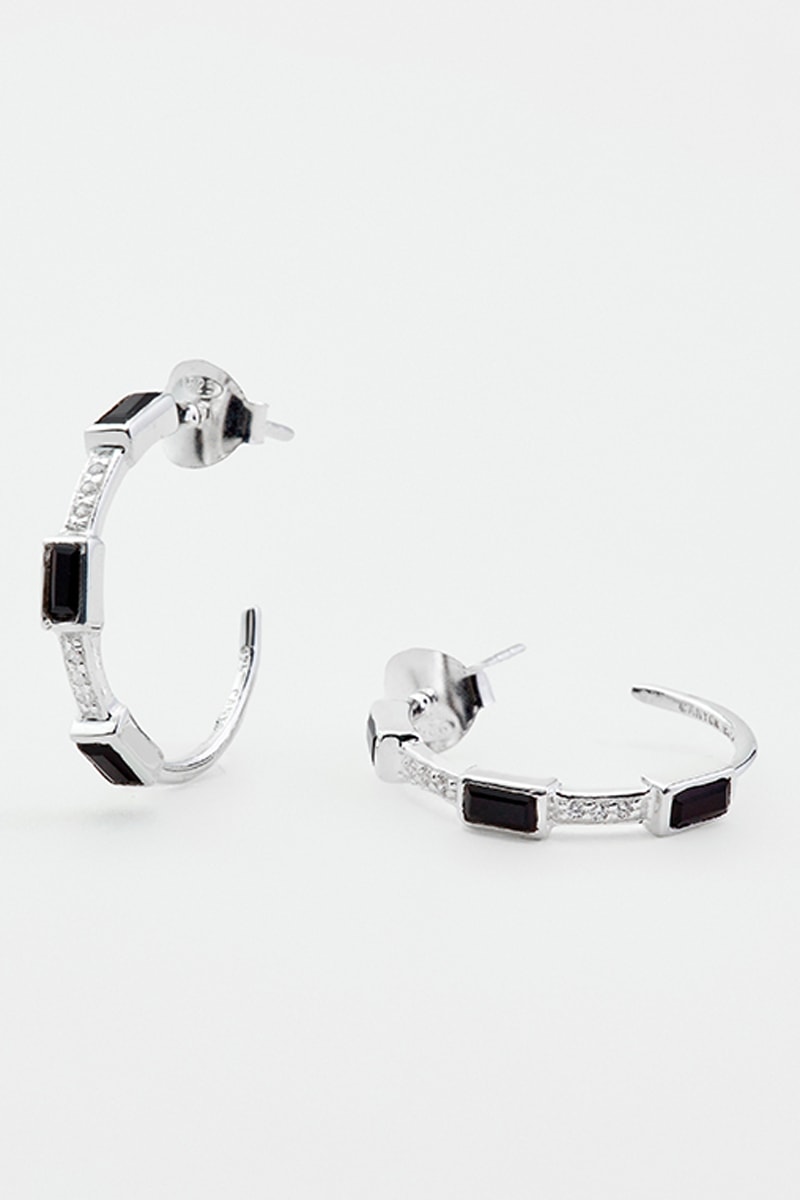 Créoles en argent serties de 3 onyx et d'oxydes de zirconium.