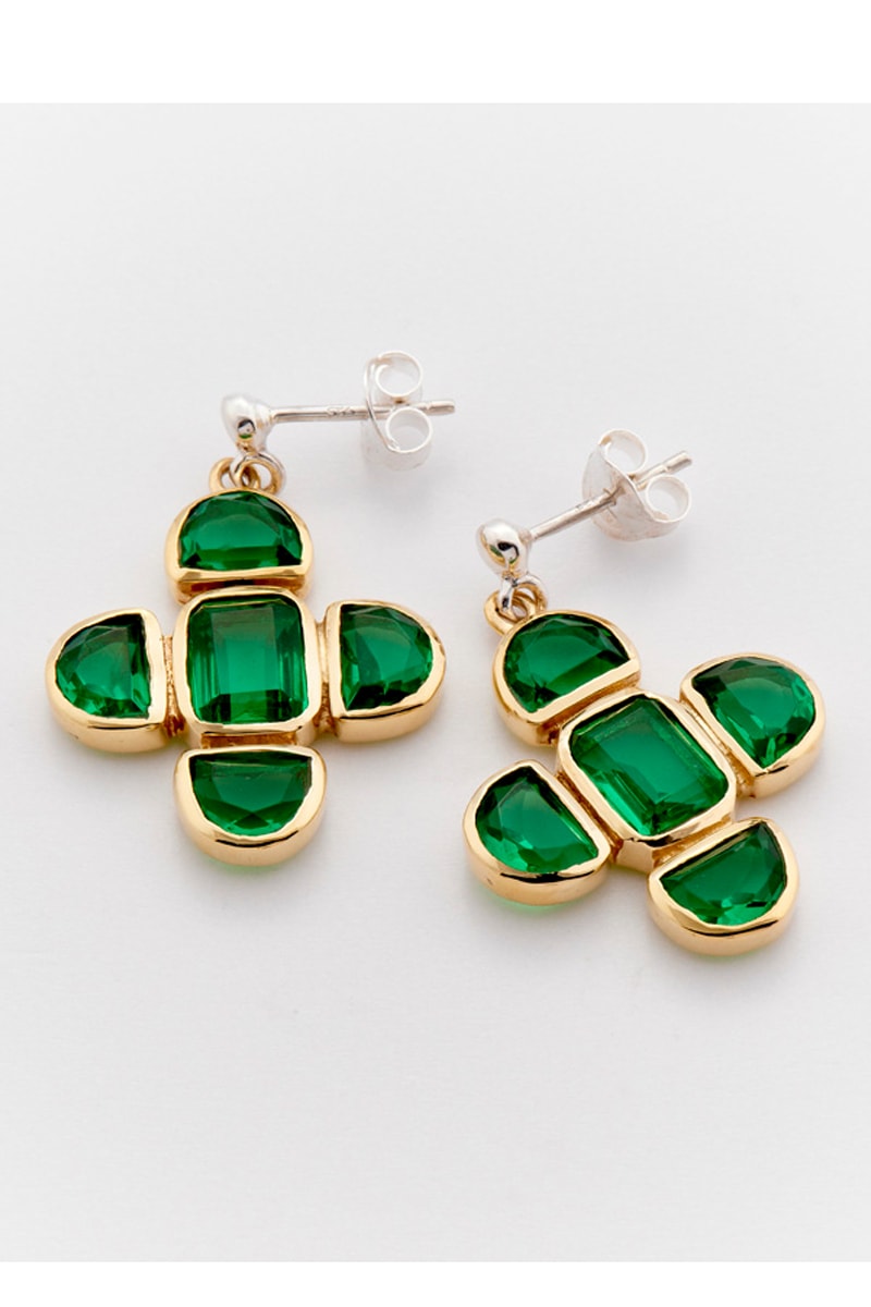 Boucles d'oreilles pendantes en argent et laiton serties de émeraude.
