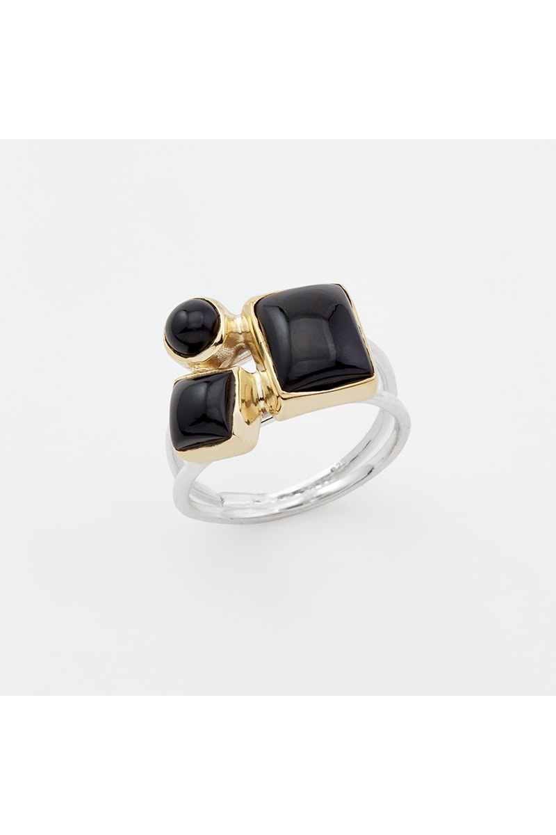 Bague en argent et laiton sertie de onyx.
