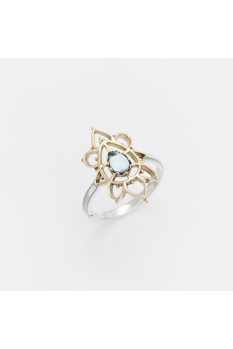 Matière : argent 925 / 1000, laiton et verre bleu topaze