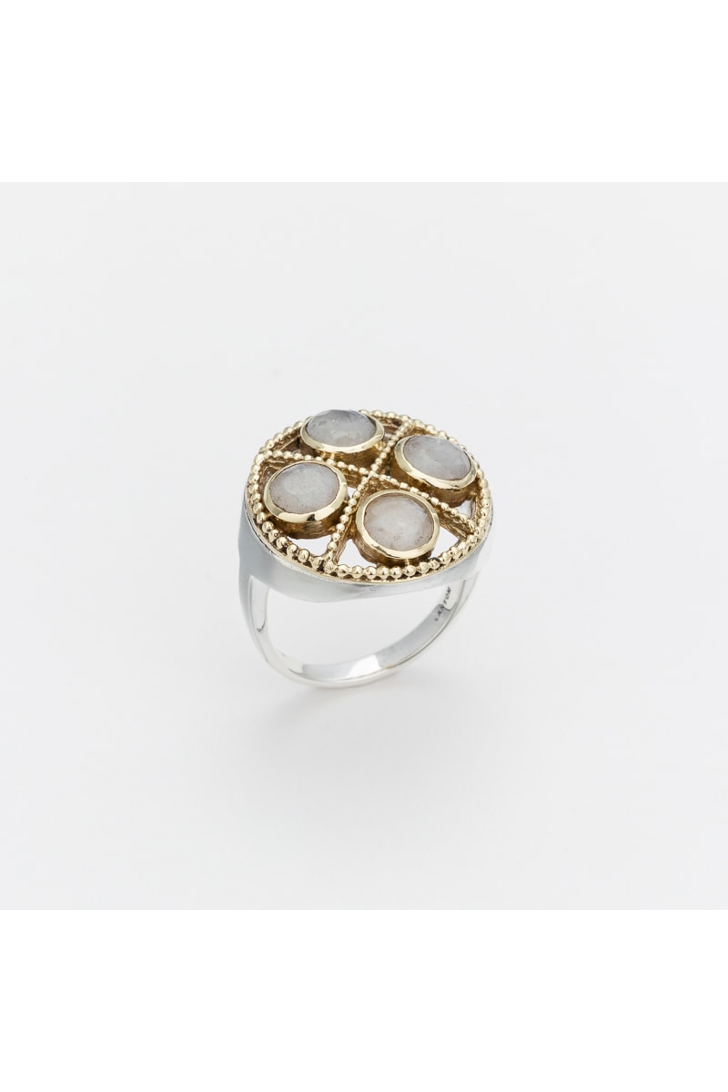 Bague en argent et laiton sertie de 4 pierres de lune.