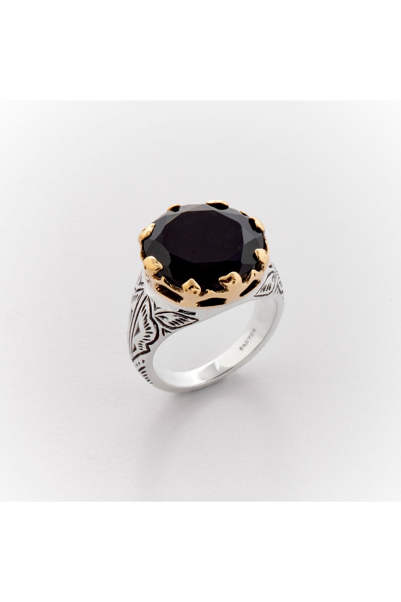 Bague en argent et laiton sertie de onyx.