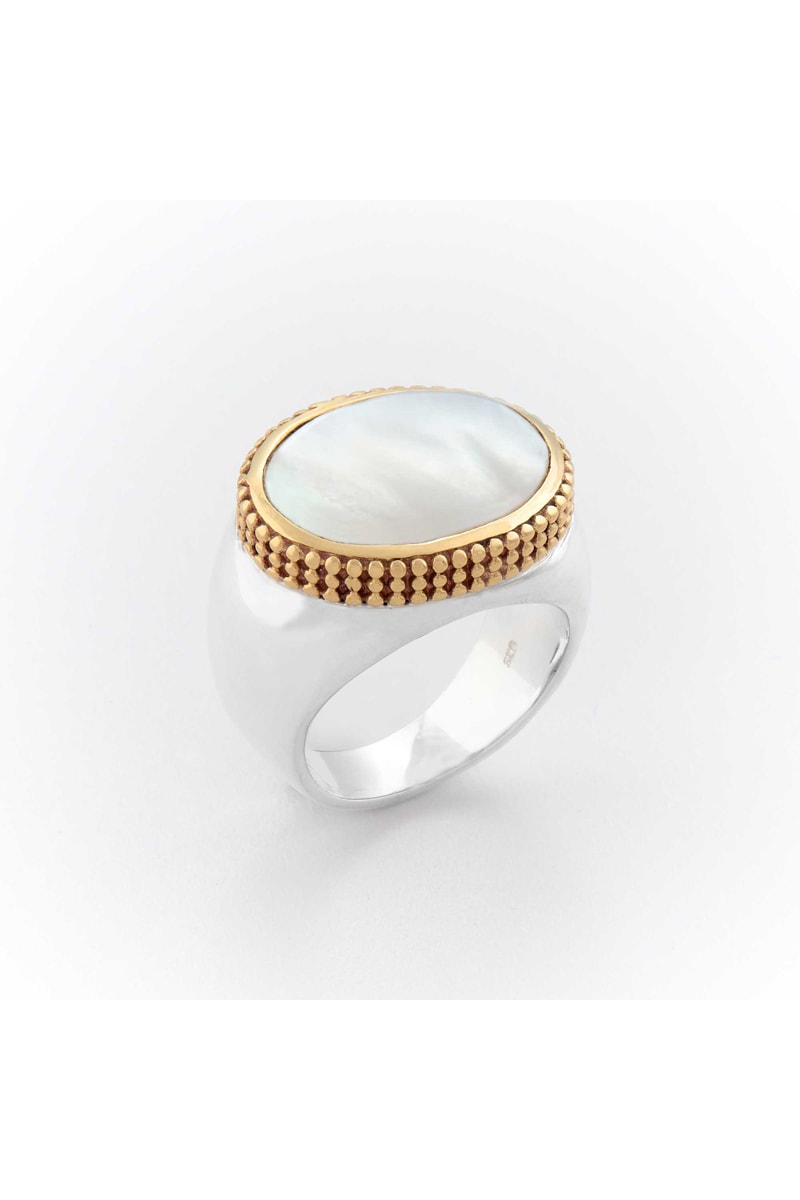 Bague en argent et laiton sertie de nacre.