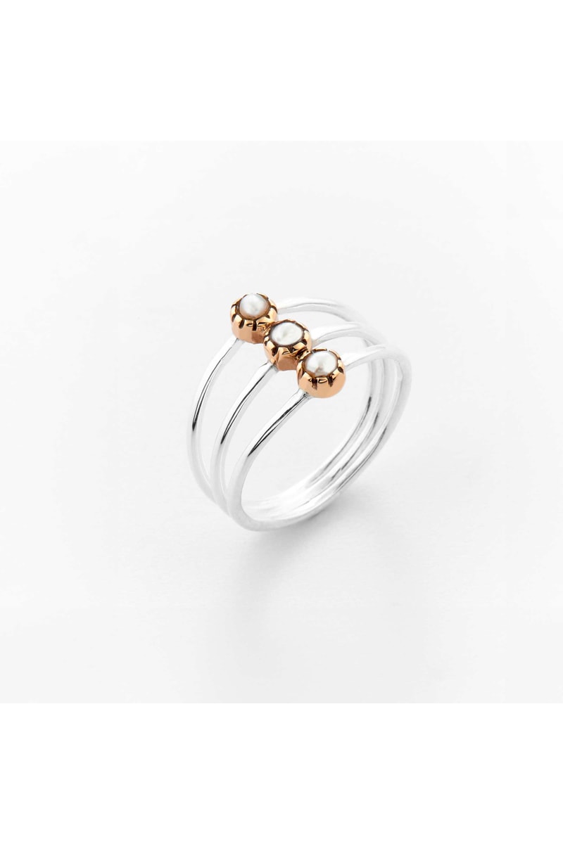 Bague en argent et laiton sertie de perles d'imitation.