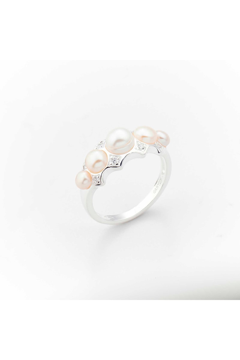 Bague en argent sertie de perles d'imitation et d'oxydes de zirconium.