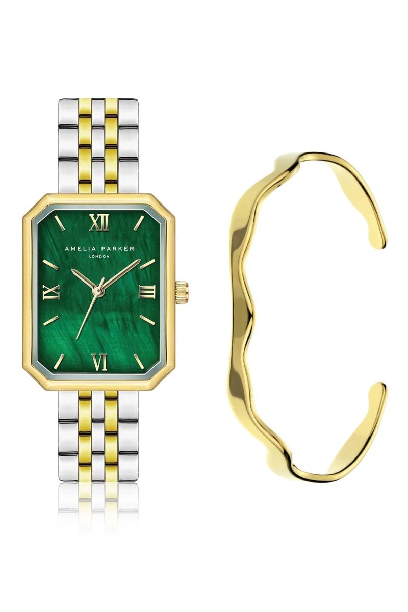 Coffret montre à quartz et jonc en acier Terrene - Nacre