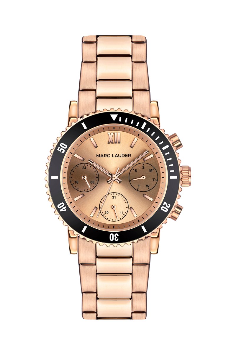 Montre à quartz en acier Granada - Doré rose et noir