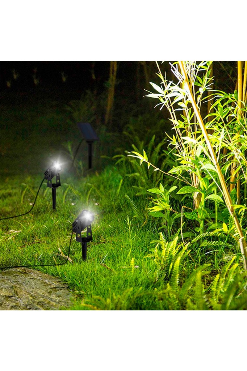 2 spots solaires LED reliés avec panneau solaire déporté 2 en 1.