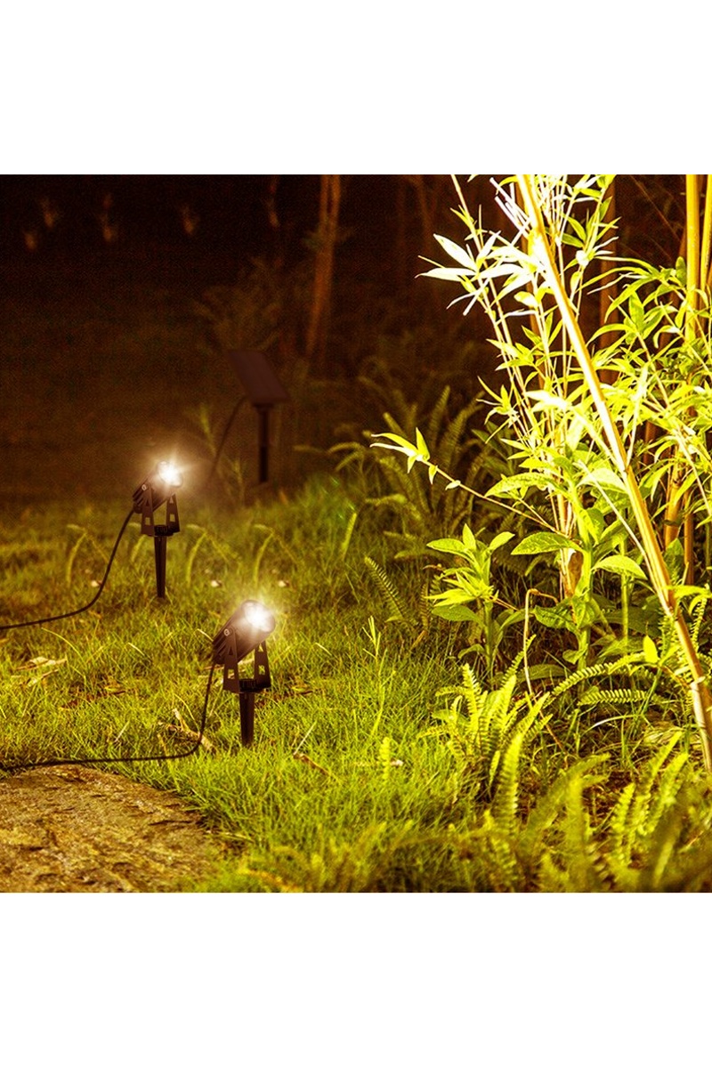4 spots solaires LED reliés avec panneau solaire déporté 4 en 1.