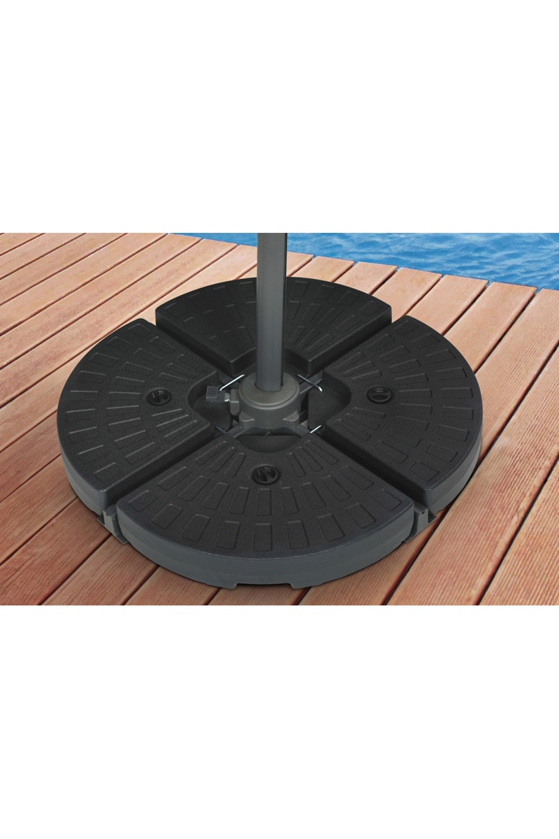 Idéal pour lester un parasol déporté équipé d'un pied en croix.
