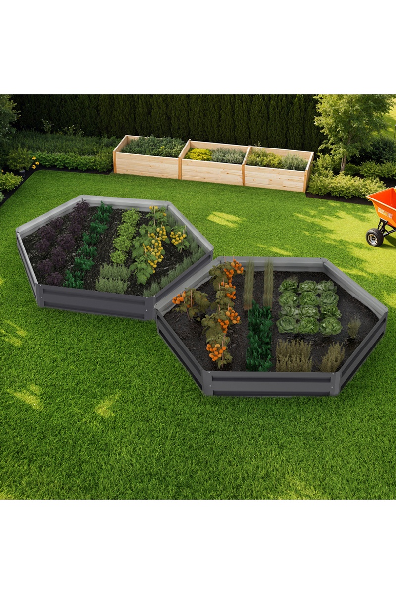2 carrés de potager hexagonaux - 138,5 x 120 x 20 cm