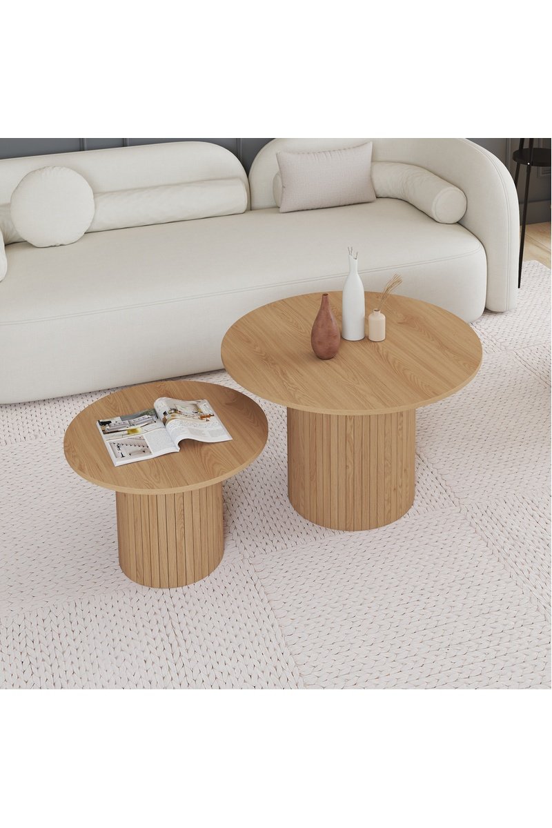 Tables basses rondes gigognes Alvar bois et pieds lattes - lot de 2