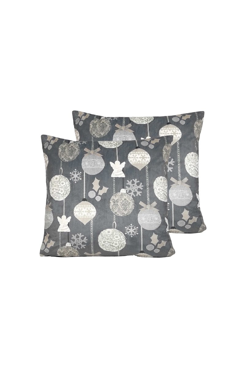 2 housses de coussin en velours Rustic - Blanc et gris - 45 x 45 cm