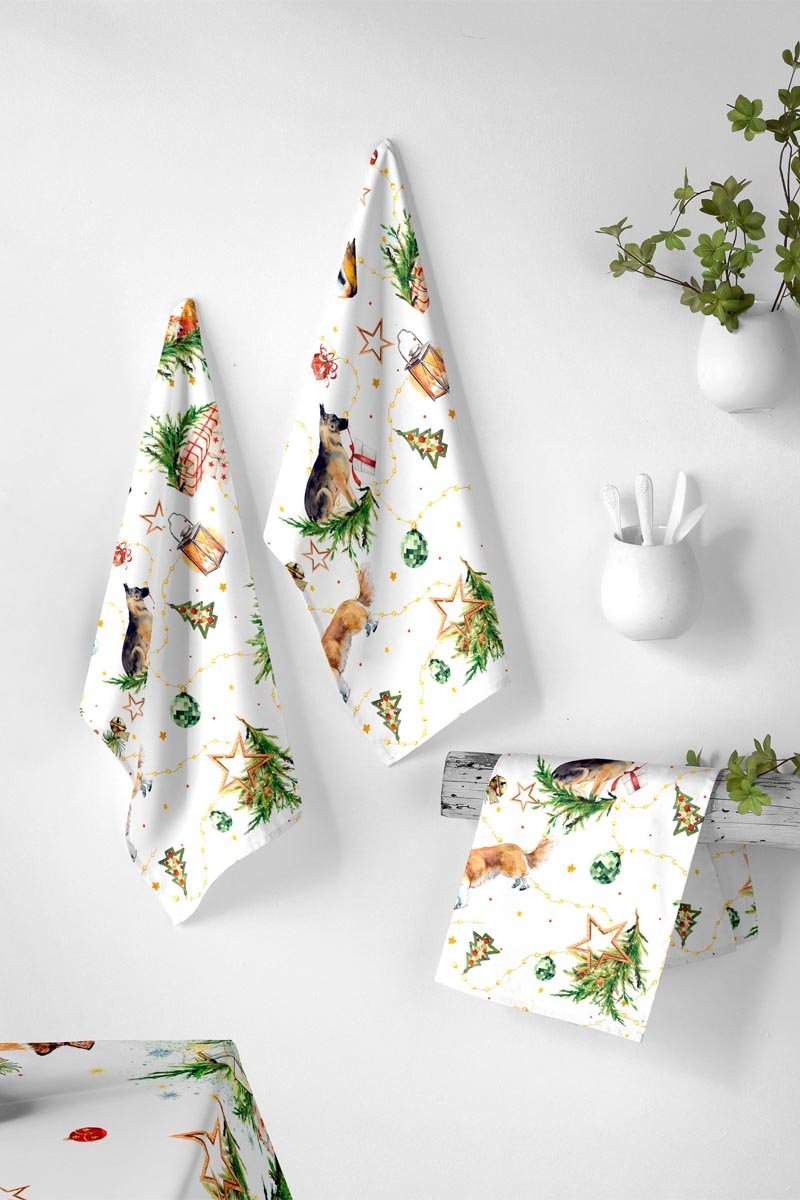 2 torchons Puppies - Blanc et vert