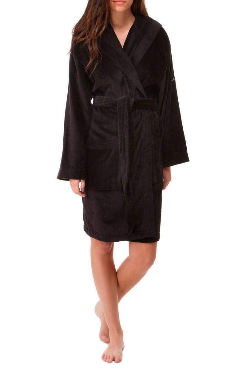 Peignoir en velours à capuche - Noir