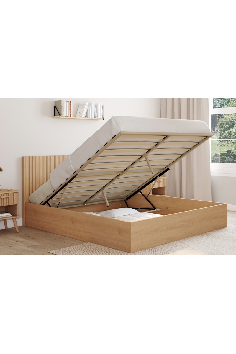 Lit coffre Faustine avec sommier et tête de lit en lattes 160x200cm
