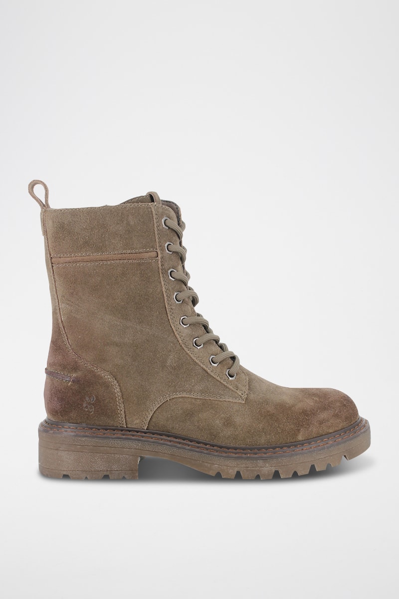 Fermeture à lacets devant et zippée sur le côté intérieur.