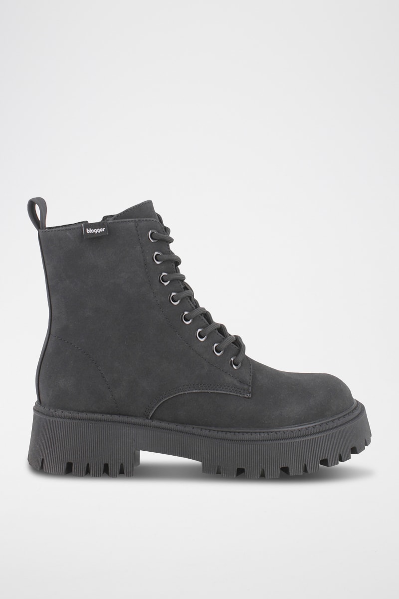 Fermeture à lacets devant et zippée sur le côté intérieur.