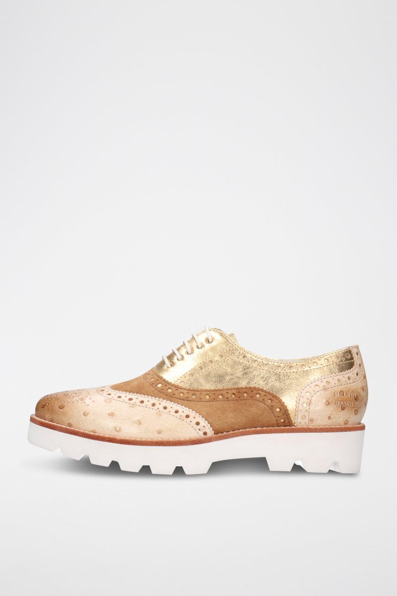 Richelieus en cuir, cuir d’autruche et nubuck.
