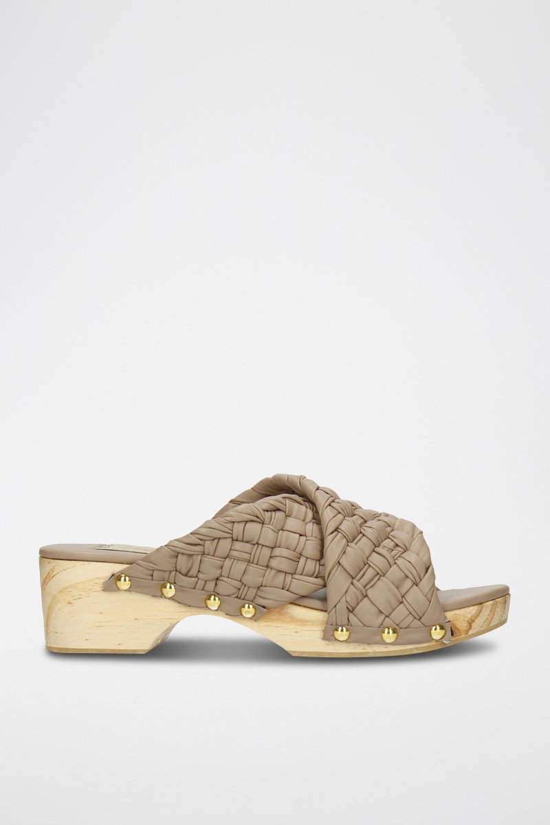 Sabots à talons en cuir.